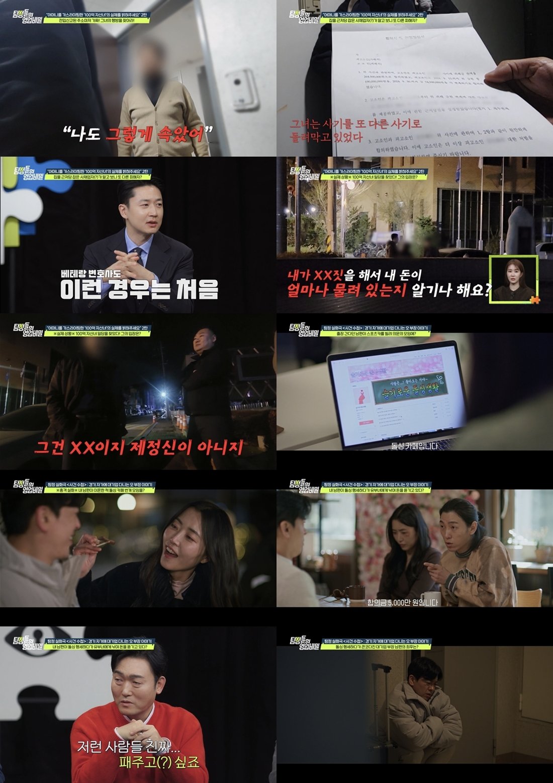 지난주 의뢰인은 “어머니가 자칭 ‘100억 자산녀’에게 속아 5억원이 넘는 피해를 입었다”며 탐정단에 도움을 요청했다.