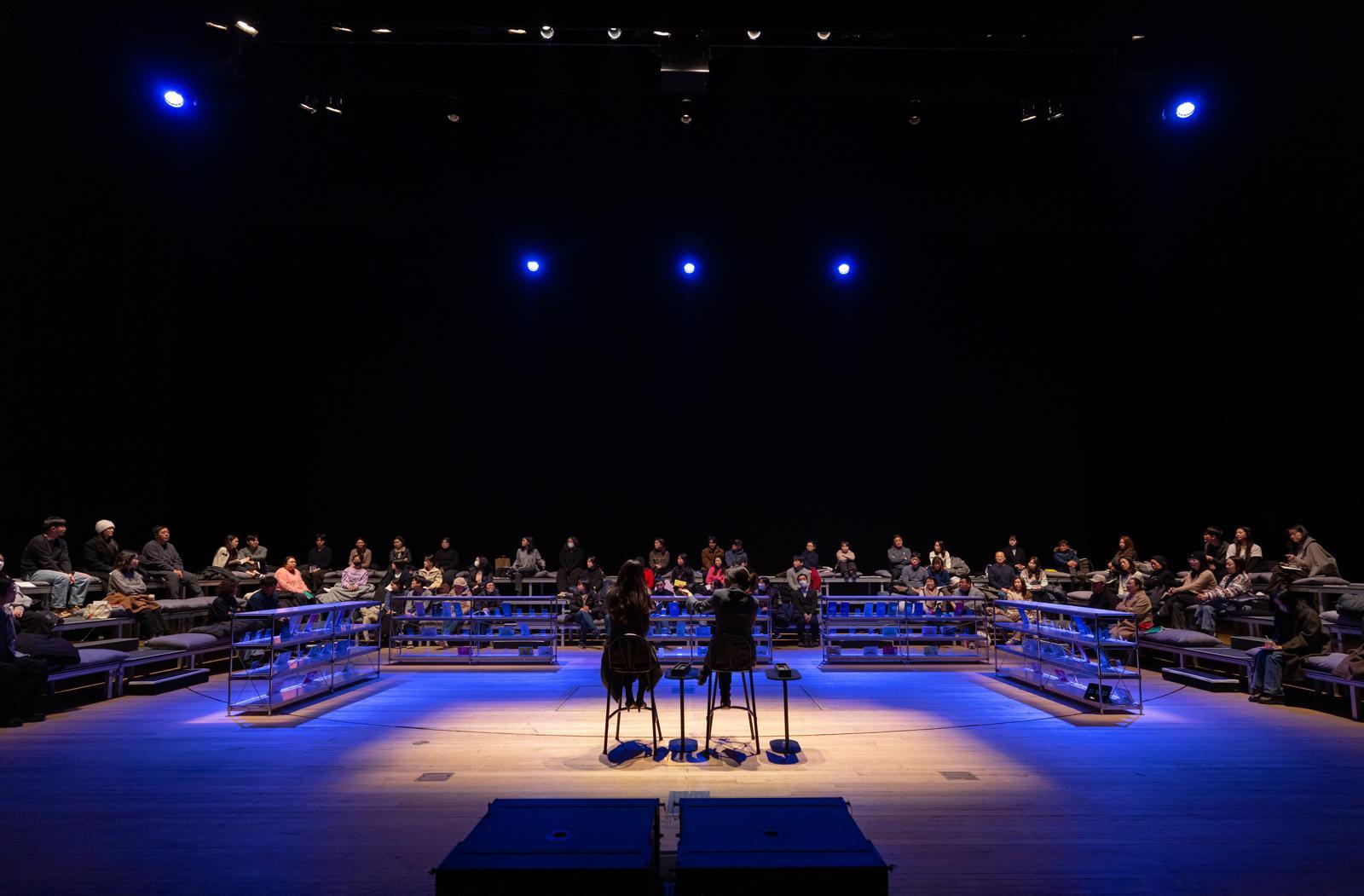 26일 서울 종로구 세종문화회관 대극장에선 조금 특별한 풍경이 펼쳐졌다. 관객들이 객석이 아닌 무대 위에 앉아, 3000석 규모의 객석을 바라보며 시를 읽고 음악을 듣는 이색적인 공연 ‘리딩&리스닝 스테이지’가 열렸다.