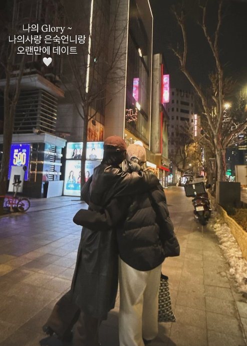 송혜교는 지난달 31일 자신의 사회관계망서비스(SNS)에 “나의 영광(Glory) 나의 사랑 은숙 언니랑 오랜만에 데이트”라는 글과 함께 사진을 올렸다.