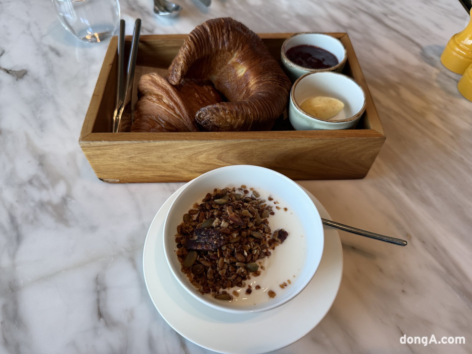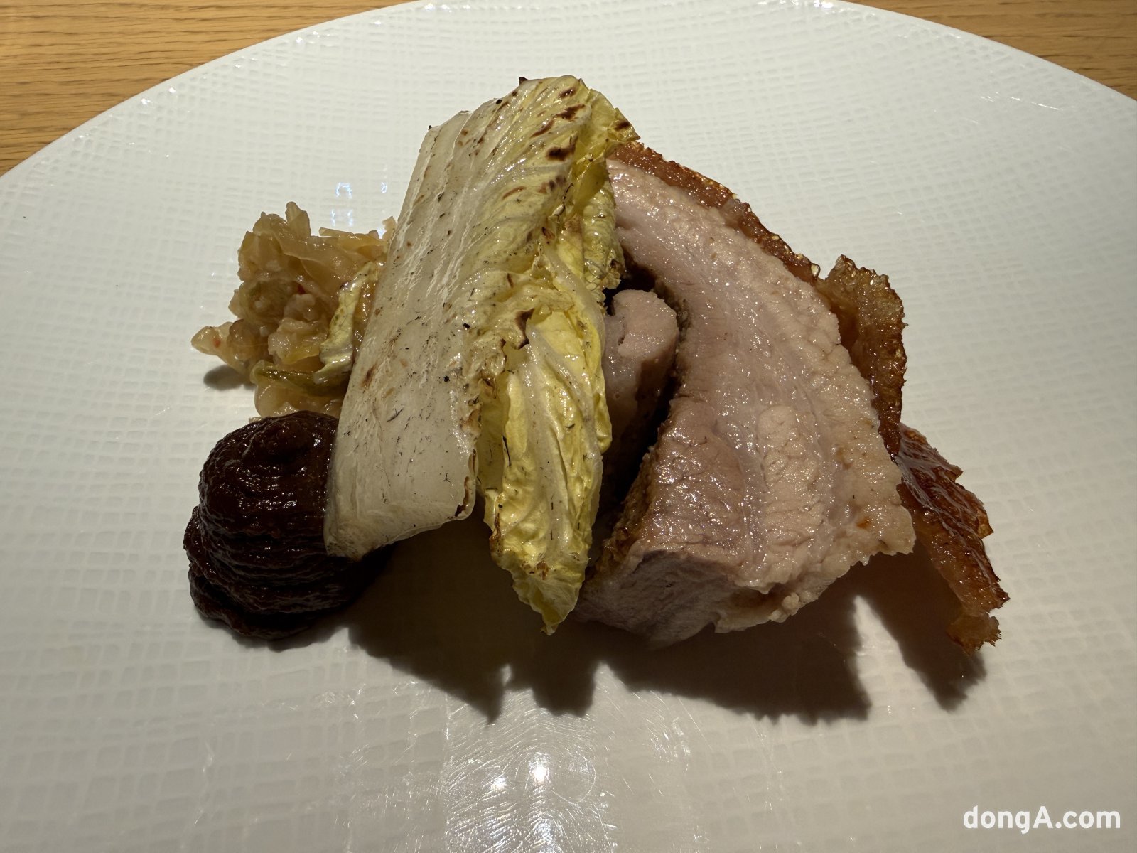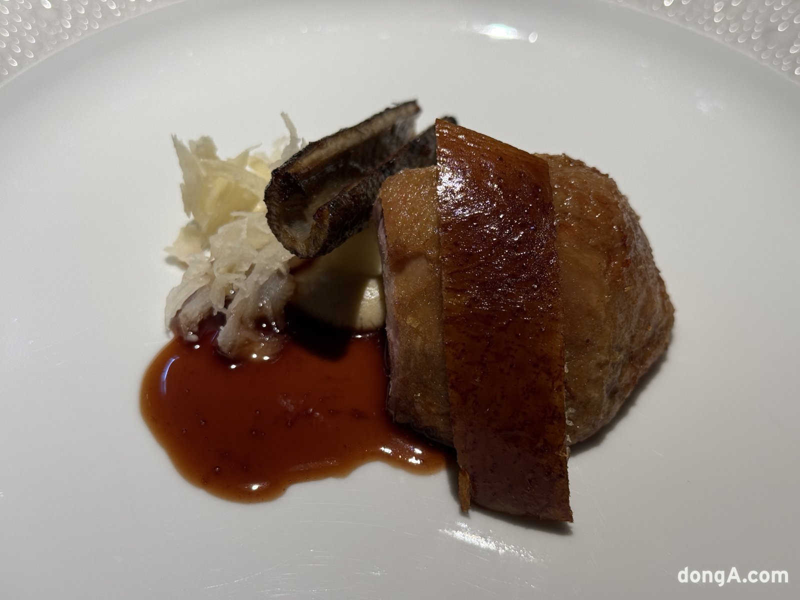 체크인을 마친 후, 7층 더 플라잉 호그 레스토랑을 찾았다. 이 레스토랑은 정통 화구를 갖춘 레스토랑으로 제주산 흑돼지, 오리, 한우, 채소 등을 전문으로 조리한다. 레스토랑의 특징은 제로 웨이스트(낭비 최소화) 조리 원칙을 따른다는 점이다. 식재료의 버려지는 부분을 최소화하면서 본연의 맛을 살리는 방식으로 요리한다. 이는 단순히 환경친화적이라는 의미를 넘어, 식재료 하나하나의 가치를 존중하는 철학이 담겨 있다.