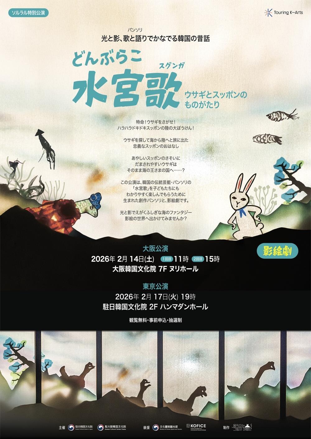 판소리 ‘수궁가’를 그림자 연극으로 재구성한 ‘수궁가’ 공연이 일본 도쿄와 오사카에서 펼쳐진다.