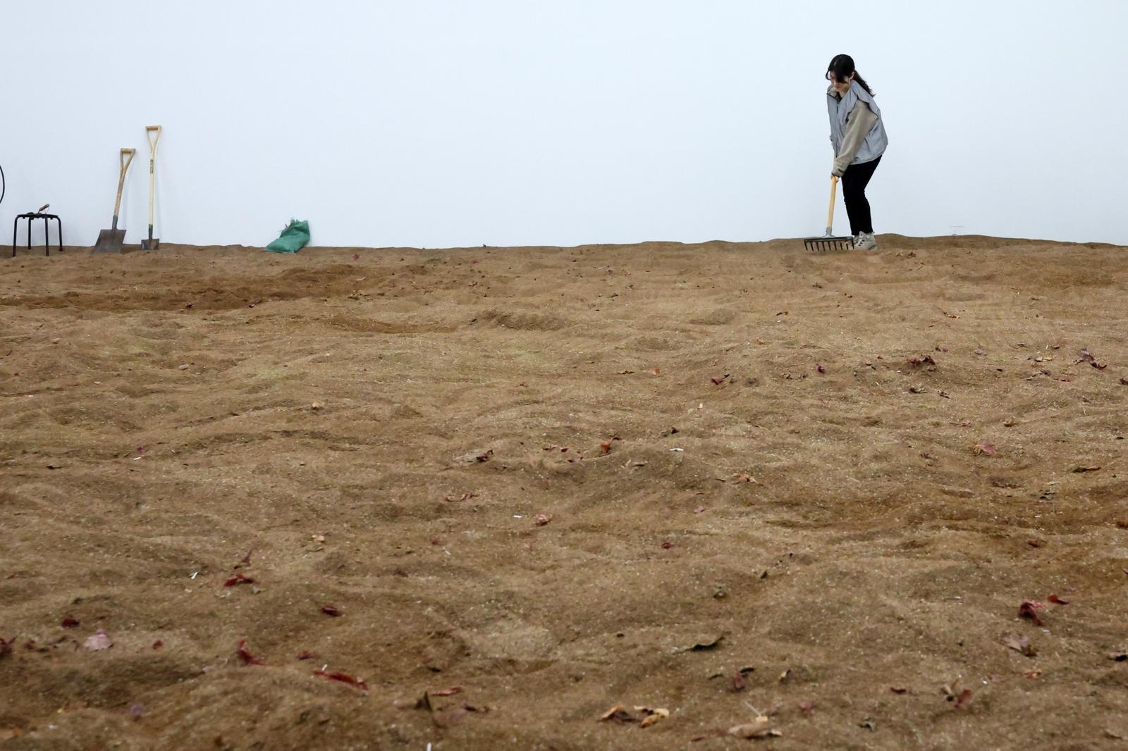 국립현대미술관 ‘소멸의 시학’전에 전시된 아사드 라자의 ‘흡수’. 서울에서 나온 폐기물로 토양을 만들었다. 분해와 소멸에 내재된 특성을 강조한 작품으로, 관람객은 이 흙을 조금씩 집에 가져갈 수 있다. 뉴시스