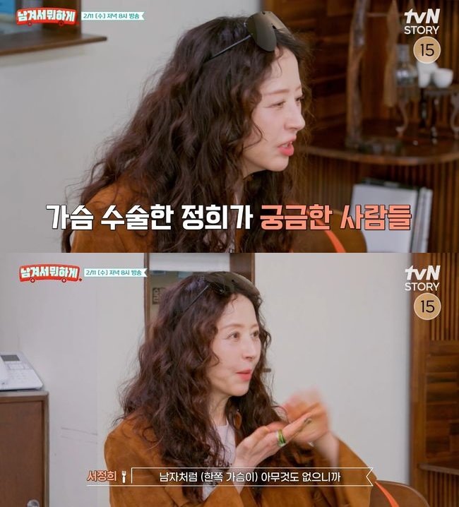 11일 방송되는 tvN STORY 예능프로그램 ‘남겨서 뭐하게’에는 서정희가 게스트로 출연해 투병 경험을 직접 털어놓는다. 이날 그는 동안 비결을 묻는 질문에 “피부과에 한 달에 한 번 가고 사우나를 좋아한다”고 답했고, 이어 목욕탕 이용에 대한 질문이 나오자 “가슴 수술 이후 사람들이 내 가슴의 현장을 보고 싶어 하는 것 같았다”고 말하며 당시 심경을 전했다.