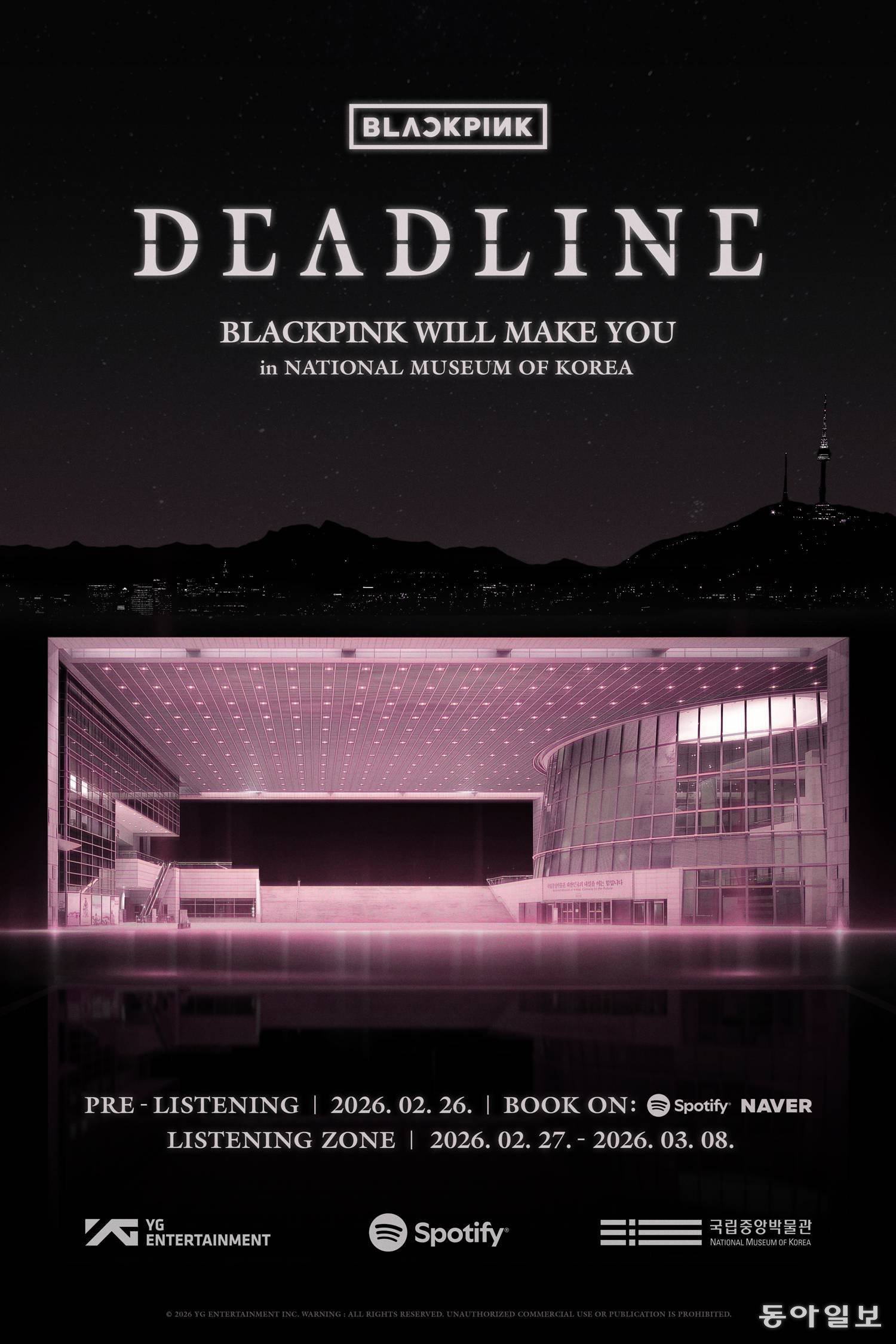 블랙핑크는 27일 미니 3집 ‘데드라인(DEADLINE)’ 발매를 기념해 국립중앙박물관과 대규모 협업에 나선다. YG엔터테인먼트는 12일 “블랙핑크가 26일부터 다음 달 8일까지 ‘국중박X블랙핑크’ 프로젝트를 선보인다”고 밝혔다. K팝 아티스트가 국중박과 협업하는 건 블랙핑크가 처음이다.