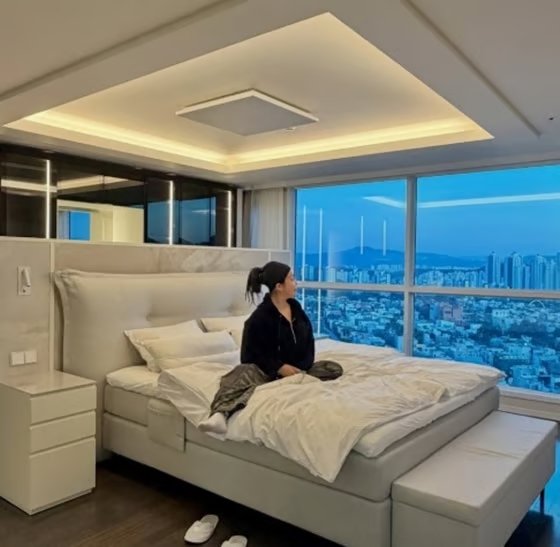 공개된 사진 속에는 깔끔한 인테리어의 침실에 앉아 있는 랄랄의 모습이 담겼다.