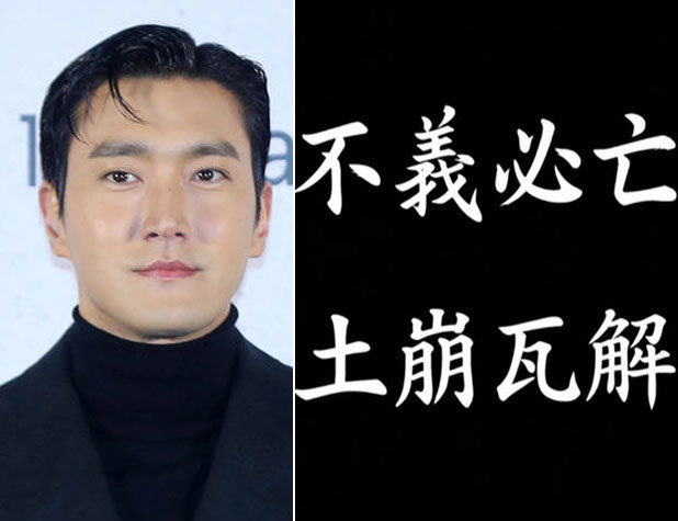 지난 19일 최시원은 인스타그램에 “불의필망, 토붕와해”(不義必亡, 土崩瓦解)라는 문구를 게시했다. 그는 이에 앞서 “불가사의”(不可思議)라는 글을 올렸다가 삭제했고, 이후 “불의필망”이라고 올린 뒤 다시 “불의필망, 토붕와해”로 수정했다.