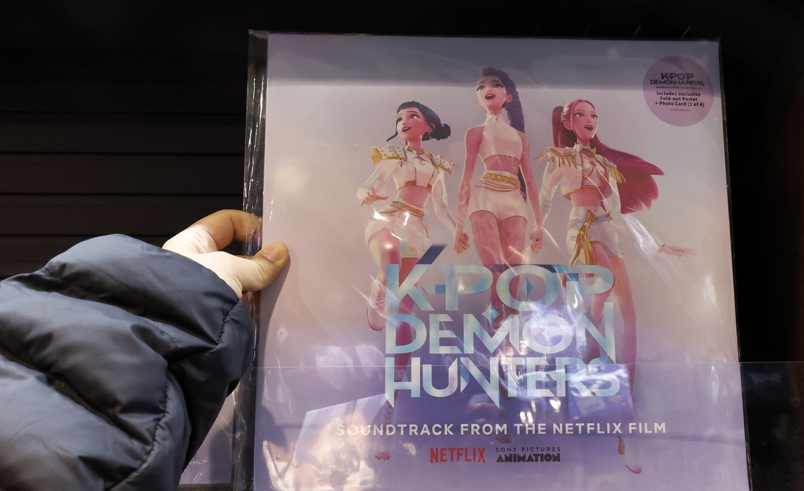 ‘케이팝 데몬 헌터스’ 속 가상 걸그룹 ‘헌트릭스’가 부른 ‘골든’이 ‘제 68회 그래미 어워즈’ 베스트 송 리튼 포 비주얼 미디어 부문을 차지한 2일 서울 종로구 교보문고에 ‘케이팝 데몬 헌터스’ OST 음반이 진열돼 있다. 2026.02.02.[서울=뉴시스]