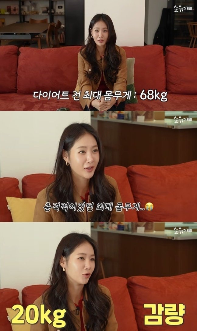 최대 몸무게가 68㎏였다는 것을 말하지 않은 이유에 대해서는 “제 자신이 너무 수치스러웠다. 충격 먹고 폭풍감량을 시작했다”고 했다.