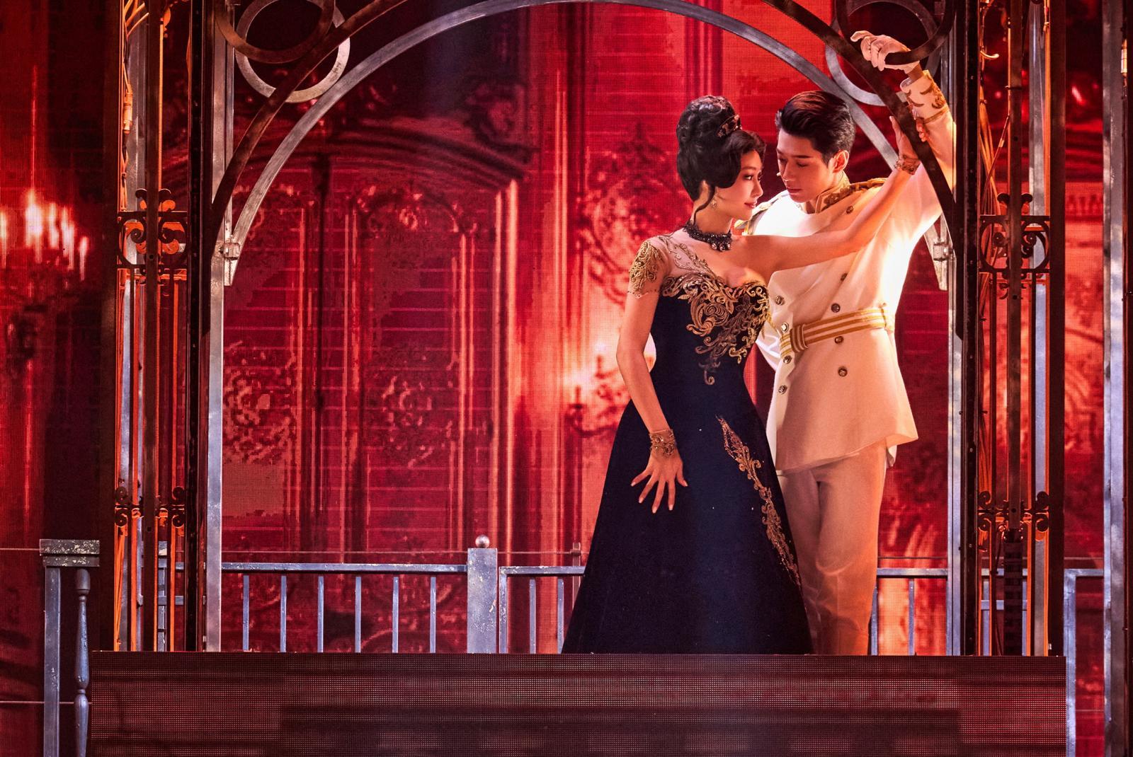 뮤지컬 ‘안나 카레니나’에서 안나(옥주현·왼쪽)와 브론스키(문유강)가 춤을 추는 장면. 마스트인터내셔널 제공