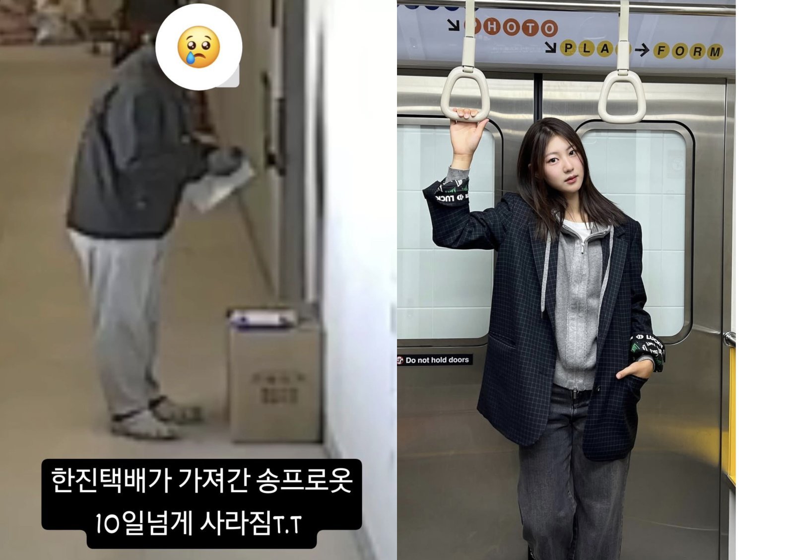 그는 6일 소셜미디어에 “한진택배가 가져간 송 프로 옷 10일 넘게 사라짐”이란 글과 함께 사진 한 장을 올렸다.