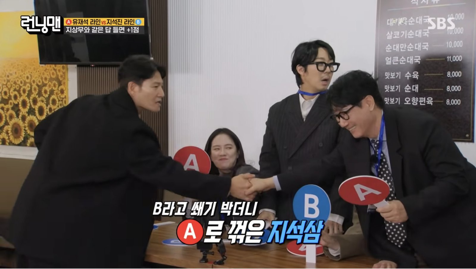 지난 8일 방송한 SBS TV 예능 프로그램 ‘런닝맨’에선 밸런스 게임이 진행됐다.
