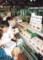 서울 김포공항 면세점에서 한국을 떠나는 일본인 미국인 등 외국인들 사이에 요즘 포기김치 깍두기 열무김치 등 각종 김치 상품이 사랑을 받고 있다.