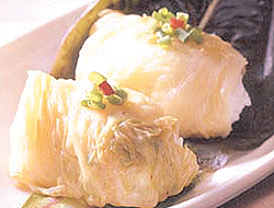 ▽김치쌈밥〓나들이용 밥은 꼭 김에만 말란 법은 없다. 달걀 부침에 말아 썰면 달걀말이밥, 깻잎에 돌려 고정하면 야채말이밥이 되고, 김치에 돌돌 말면 김치쌈밥이 된다. 밥을 고슬고슬하게 지어 소금 참기름 다진 파로 약하게 간 해 놓는다. 썰지 않은 김치를 물에 한 번 헹군 후 설탕 소금 참기름 등으로 양념해 둔다. 밥을 조금씩 뭉친 후 양념한 김치잎으로 싸준다. 밥 대신 만두속이나 다진 고기 등을 넣어 살짝 쪄 먹어도 별미다.
