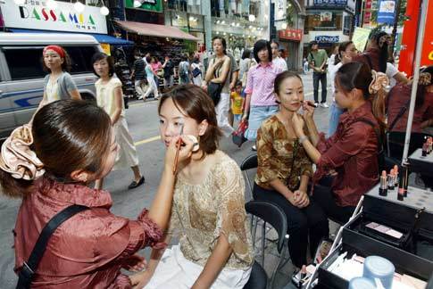 태평양은 9일 서울 중구 명동에서 올 가을 유행할 스타일의 메이크업을 무료로 해주는 ‘가을 메이크업’ 행사를 열었다.