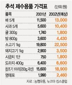농협유통은 5인 가족의 추석차례상 비용이 약 12만3400원(하나로클럽 기준)으로 지난해보다 약 11% 오를 것으로 내다보는 등 ‘추석물가 불안’이 예상된다.