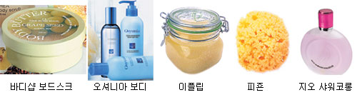 ‘보디스크럽’은 스크럽(scrub)이란 영어단어에서 풍겨지는 느낌처럼 각질을 없애는 탁월한 효과가 있다(2만5000∼4만원).
