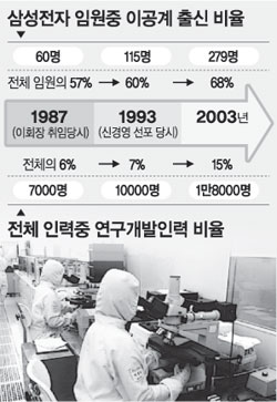 이 회장은 삼성의 이공계 출신 전문경영인들을 예로 들었다.