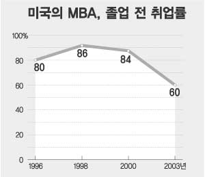 지표상으로는 미국 경기가 회복세라지만 피부로 체감되는 경기는 여전히 마이너스다. 무엇보다도 기업들의 해고 행진이 멈추지 않고 있다. 미국 경영대학원도 경기를 탄다. 수년전엔 모셔가기 경쟁의 대상이었던 졸업생(MBA)들은 요즘은 마음에 드는 직장에 취직하기가 점점 어려워지고 있다. MBA 출신도 해고 태풍으로부터 자유롭지 못하다. 그렇다면 MBA 2년 과정에 10만달러(약 1억2000만원)의 등록금을 내고 몸값을 올려보려던 꿈이 금세 물거품이 되었단 말인가?