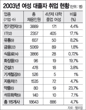 ▽여성부도 지원에 나서=여성 취업난의 심각성을 인식한 여성부는 취업을 앞둔 여대생과 고학력 미취업자를 대상으로 ‘맞춤형 여성취업 교육 프로그램’을 시작했다.