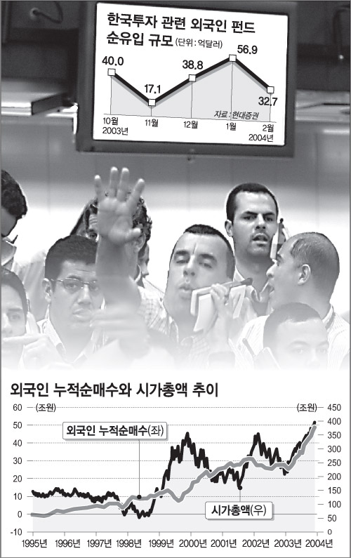 ▽외국인 자금 계속 들어올까=외국인 자금 추가유입 가능성에 대해서는 전문가들의 의견이 엇갈린다. 메릴린치 이 전무는 “한국에 투자를 하지 않던 선진국 펀드들이 한국증시에 관심을 갖기 시작했다”며 “일부 펀드는 한국물을 막 사기 시작했다”고 지적했다.