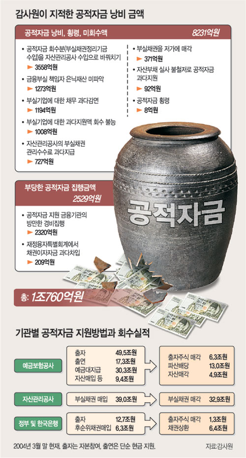 ▽약정 체결 미숙으로 1000억원대 공적자금 손실=예보와 KAMCO는 부실 금융회사에 공적자금을 지원하면서 사후정산 약정을 제대로 맺지 않는 미숙한 업무처리로 1008억원의 공적자금을 날렸다고 감사원은 지적했다.