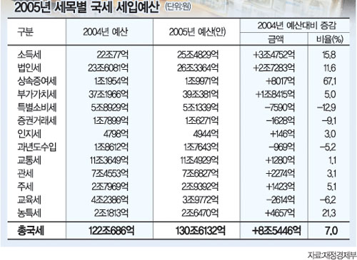 재경부는 양도세와 종합소득세가 크게 늘어나는 반면 근로소득세는 올해와 비슷한 수준이 유지될 것이라고 설명했다.