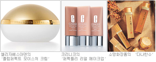 □크리니크는 다음 달 새로운 성능을 갖춘 파운데이션 ‘퍼펙틀리 리얼 메이크업 리퀴드-콤팩트 SPF15 PA++’를 내놓는다. 크리니크측은 “자외선 차단 기능과 함께 비타민E 등의 강력한 항산화제가 포함돼 노화방지 효과도 있다”며 “‘메틸 메타크릴레이트 크로스 폴리머’ 등과 같은 성분이 들어 있어 미세한 주름을 없애는 데도 도움이 된다”고 말했다. 또 기미 주근깨 잡티처럼 피부가 변색된 부위를 자연스럽게 커버해 준다는 설명. 30mL 4만2000원.
