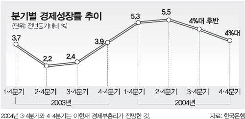 이헌재(李憲宰) 부총리 겸 재정경제부 장관은 올해 3·4분기(7∼9월)와 4·4분기(10∼12월) 국내총생산(GDP) 성장률이 5%선 이하로 내려갈 것으로 전망했다.