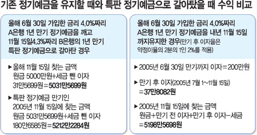 하지만 굳이 기존 정기예금을 깨서 특판 예금에 넣는 일은 신중히 결정해야 한다는 게 서 팀장의 충고다.