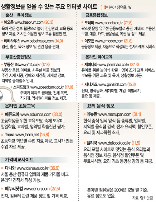 어린이 두뇌 발달을 돕는 교재는 어디서 싸게 살 수 있는지, 파격 할인 이벤트 품목 중에서 쓸 만한 물건은 무엇인지, 젖병은 어느 브랜드가 좋은지 등을 금방 찾을 수 있는 것.