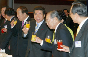 또 박용성(朴容晟) 대한상의 회장과 강신호(姜信浩) 전국경제인연합회 회장 등 경제5단체장과 박용오(朴容旿) 두산그룹 회장, 박삼구(朴三求) 금호아시아나그룹 회장, 조양호(趙亮鎬) 한진그룹 회장, 이구택(李龜澤) 포스코 회장, 최태원(崔泰源) SK㈜ 회장 등 주요 기업 총수도 자리를 함께했다.
