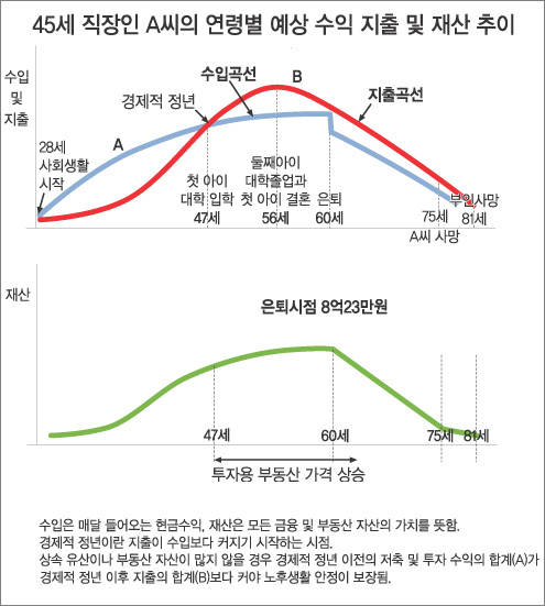 40대 중반까지는 자신의 처지에 맞는 집을 장만하고 본격적으로 노후에 대비해야 한다.