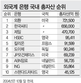 미국계 뉴브리지캐피탈과 론스타는 2000년과 2003년 제일은행과 외환은행을 인수했다. 또 미국 씨티그룹은 지난해 한미은행을 인수해 한국씨티은행을 출범시켰다.