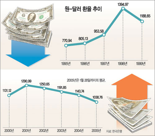 무역연구소 신승관(辛承官) 연구위원은 “올 평균 환율이 1000원이 되면 상품수지 흑자 규모가 연간 63억∼64억 달러 줄어들 것으로 우려된다”고 말했다.