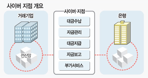 기업은행 e비즈니스부 박덕환(朴德桓) 차장은 “사이버 지점은 은행과 기업의 전산망을 연결한다는 점에서 회사 사옥에 은행 지점을 입주시키는 것과 다르다”며 “다른 은행 계좌까지 통합 관리할 수 있기 때문에 종전의 인터넷 뱅킹과도 구별된다”고 설명했다.