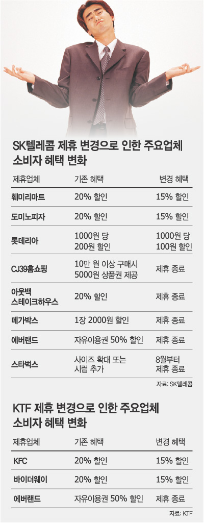 SK텔레콤은 이에 대해 “소비자들에게 다양한 혜택을 주기 위해 제휴업체를 변경했으며 가맹점이 7000개에서 8000개로 늘어났다”며 “온라인 콘텐츠 이용 서비스를 확대했다”고 설명했다.