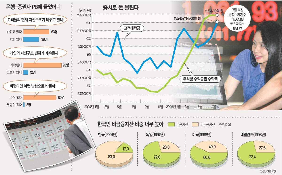 자산시장의 변화를 가장 빨리 감지하는 은행과 증권사의 프라이빗뱅킹(PB) 컨설턴트들은 ‘변화는 이미 시작됐으며 그 중심은 주식 간접투자가 될 것’이라고 내다봤다.