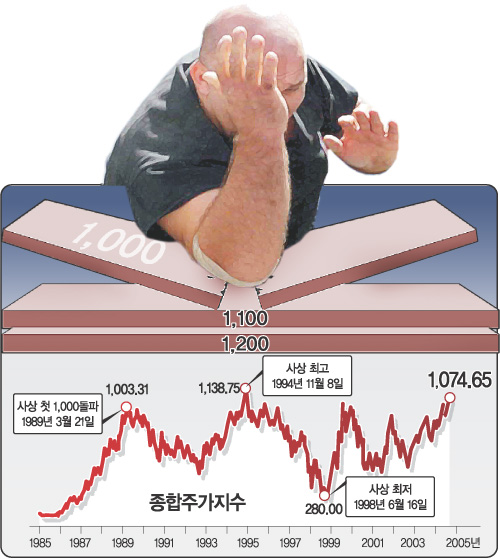 1,100 선이 강력한 저항선 역할을 해 좀처럼 넘지 못한다면 한국 증시의 장기 박스권 상단인 1,100 선에 대한 투자자의 기억이 되살아나 지수가 더 주춤거릴 가능성이 크다.