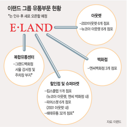 패션 의류업체로 출발한 이랜드그룹은 인수합병(M&A)을 통해 유통 부문으로 영역을 확장해 왔다. 지난해 매출 2조654억 원 중 유통부문이 1조2410억 원으로 전체 매출의 60%가량을 차지했다.