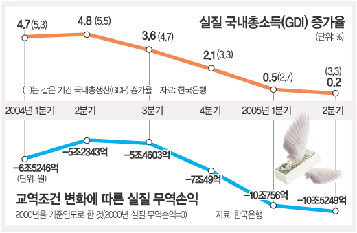 이를 반영하듯 피부로 느끼는 국내총소득(GDI) 증가율은 올해 들어 계속 0%대에 머물렀다.