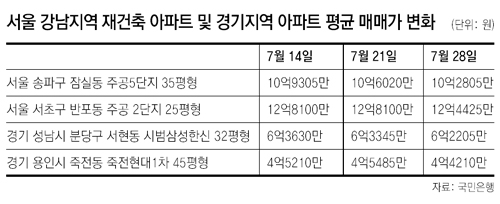 올 상반기 급등세를 보였던 서울 강남 지역과 경기 성남시 분당, 용인의 집값도 모두 하락세를 보였다.