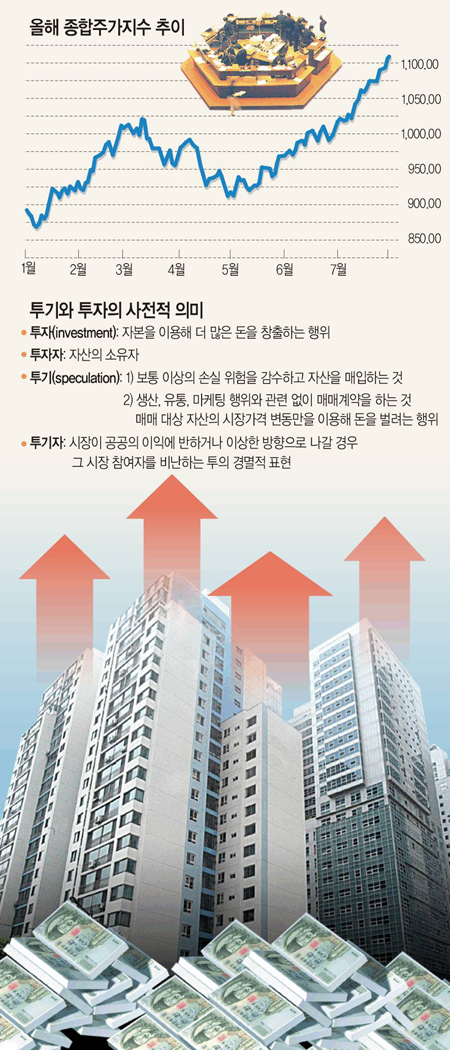 한국투자증권 강성모(姜盛模) 투자분석부장은 “이해가 가능한 펀더멘털의 변화에 의지한다면 투자에 가깝고, 일시적인 가격 흐름만을 놓고 돈을 건다면 투기에 가깝다”고 말했다.