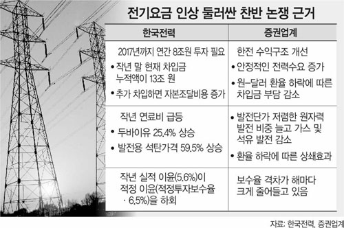 한전은 또 지난해 두바이유가 배럴당 25.4% 오르고 발전용 석탄 도입가격이 t당 59.5% 뛰는 등 연료비 상승으로 전기공급 비용이 급증했다고 주장한다.
