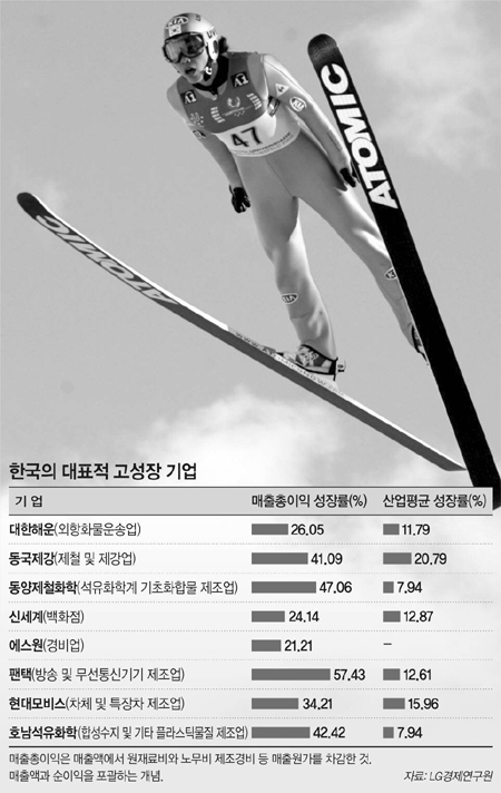 이들 기업은 매출총이익에서 해당 업종 평균 성장률의 두 배 이상인 기업들이다. 매출총이익은 매출액에서 원재료비 등 제조 과정에 직접 들어가는 매출원가를 뺀 것으로 기업 영업수익의 원천이 된다. ▶표 참조