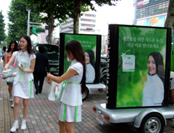 유한킴벌리는 생리대 ‘화이트’와 ‘좋은 느낌’의 신제품 시판 기념으로 이동형 옥외 광고인 ‘스쿠터 광고’(사진)를 25일까지 서울 강남, 종로 등에서 운영한다고 15일 밝혔다. 유한킴벌리 측은 스쿠터 광고 설치와 함께 신제품을 무료로 나눠 주는 행사를 벌일 계획이다.