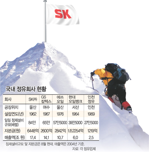 국내 최대 정유사인 SK㈜가 5위 인천정유를 인수하면 ‘정유업계의 공룡’으로 떠오르게 된다. SK㈜의 하루 정제능력은 현재 84만 배럴에서 111만5000배럴로 늘어나 2위 업체인 GS칼텍스(65만 배럴)를 멀찌감치 따돌리게 된다. 시장점유율은 현재의 34%에서 40%로 높아지면서 GS칼텍스(30%)를 10%포인트 앞선다.