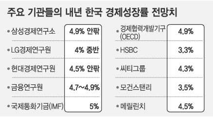 국내기관 중에서는 삼성경제연구소와 한국경제연구원이 4.9% 정도로 예상하고 있다.