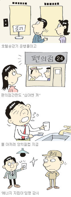 신라호텔과 밀레니엄서울힐튼호텔은 고객이 적은 심야시간대 엘리베이터 운행 대수를 절반으로 줄였다.
