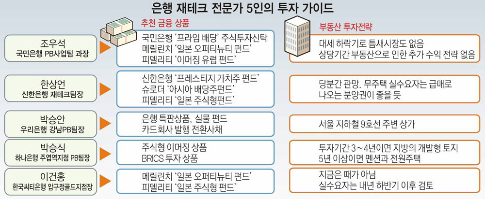 재테크 전문가 5명이 추천한 금융상품은 서로 달랐다. 하지만 간접투자 상품인 주식형 펀드는 공통적으로 추천했다.