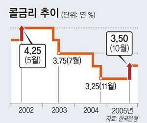 콜금리가 오른 것은 2002년 5월 이후 3년 5개월 만에 처음이다.